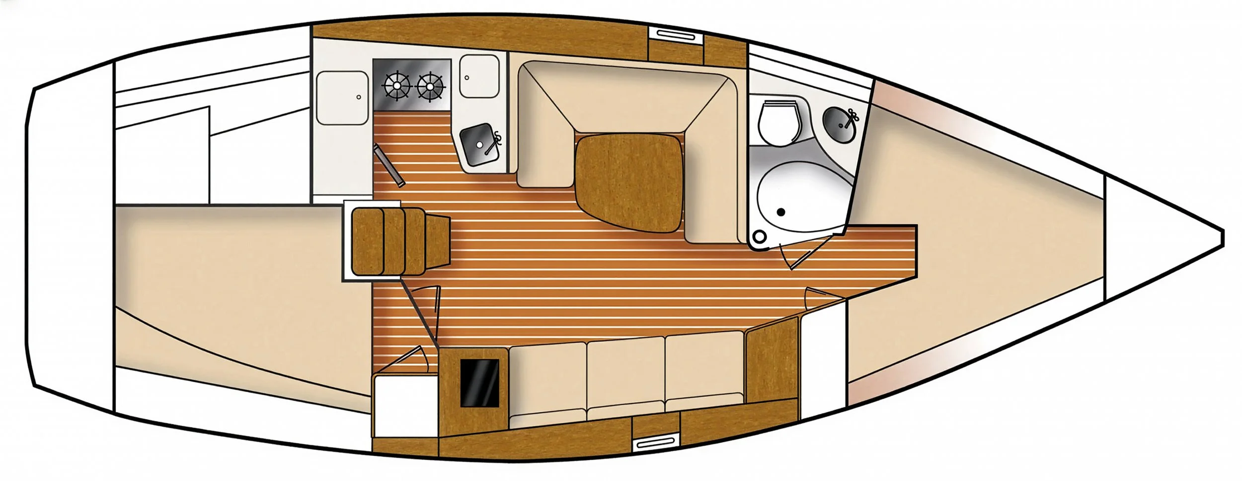 Every element of the 5 Series Catalina DNA is present in the 315. From the bold, low-profile cabin design and ergonomic cockpit optimized for performance, to the lead keel for stability and confident handling, this yacht delivers both power and elegance. Visibility from the helm is superb, giving you full command of your journey, while the warm, inviting teak interior ensures comfort and timeless beauty below deck.